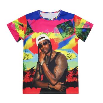 8010 # M-2XL erkek Slim Fit yaz moda Hip Hop T-shirt yüksek elastik nefes rahat üst karakter desen kısa kollu ile